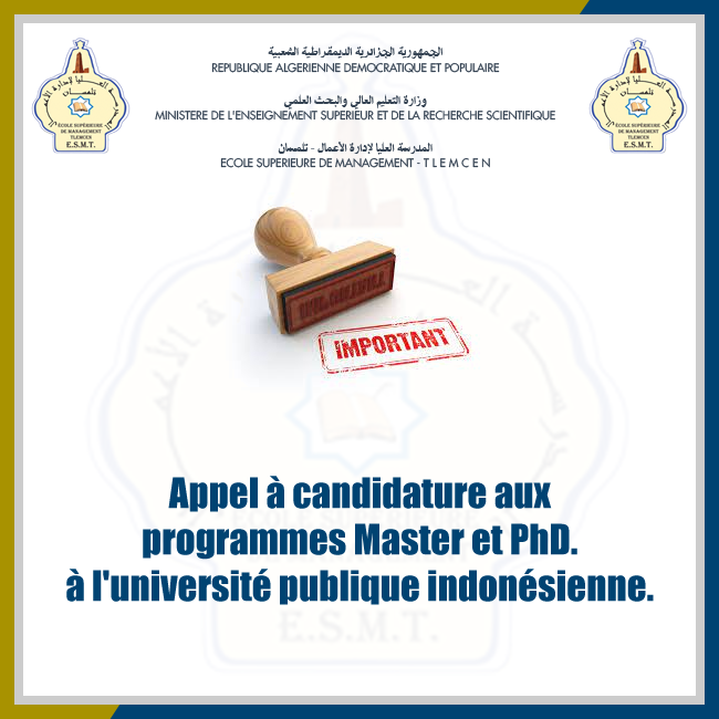 Appel à candidature aux programmes Master et PhD. à l’université publique indonésienne. Lire la suite Appel à candidature aux programmes Master et PhD. à l’université publique indonésienne. février 5, 2026 Publié dans Actualités
